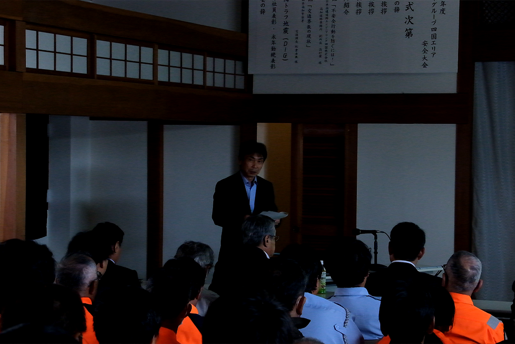 西日本高速道路エンジニアリング株式会社様からは、「不安全行動を防ぐには」をテーマにご講演いただきました。業務中に陥りやすい不安全な行動について、実例を交えながらその背景や原因を掘り下げ、どのように防止していくかを丁寧に解説していただきました。