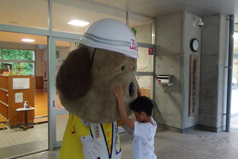高知県交通安全の日として、南国市白木谷小学校にて挨拶の励行を行いました。