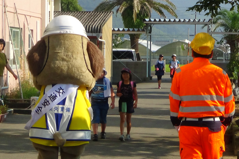 高知県交通安全の日として、高知市立春野西小学校にて挨拶の励行を行いました。