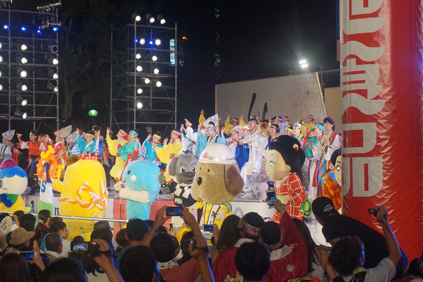 第65回よさこい祭り前夜祭・後夜祭にとうおうくんが参加しました!